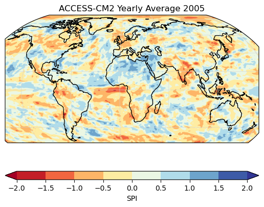 Fig. 159 Example plot of SPEI averaged over the year 2005. The reference period for index calibration is 2000-2005.#