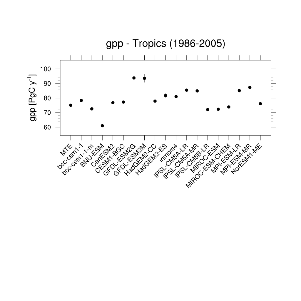 Fig. 331 Errorbar plot for tropical gross primary production (GPP) over the period 1986-2005.#