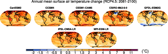 Fig. 311 Surface air temperature change in 2081–2100 displayed as anomalies with respect to 1986–2005 for RCP4.5 from individual CMIP5 models.#