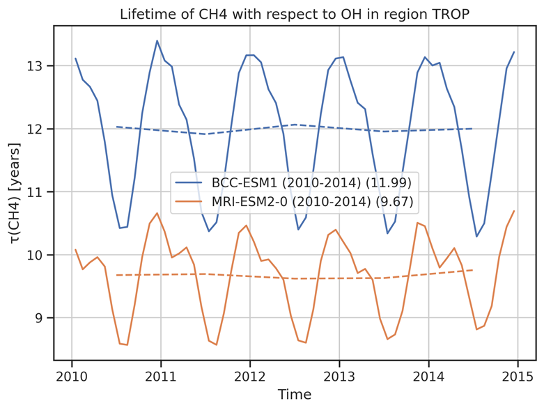 Time series of CH4 lifetime in the troposphere.