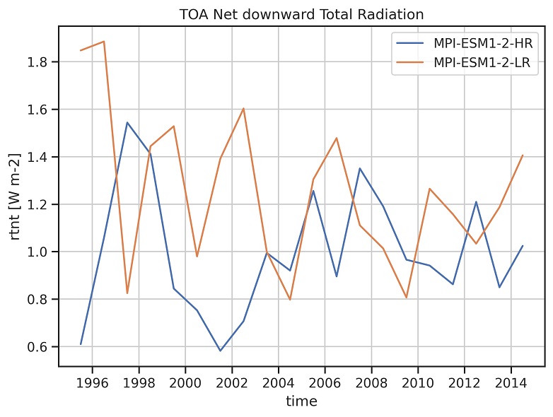 Fig. 101 Time series of the global mean top-of-the-atmosphere net radiative flux.#