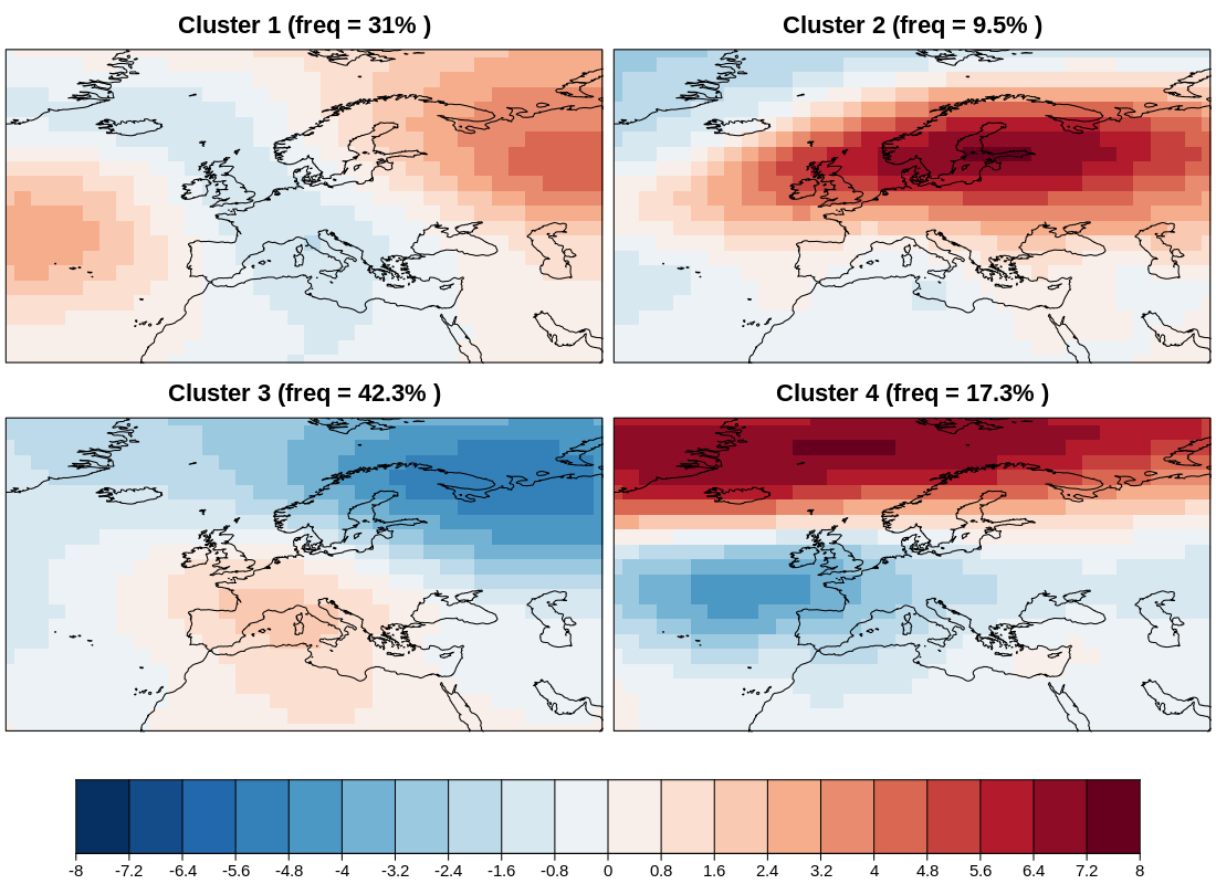 WeatherRegime.R - function for computing the EOFs and k-means and hierarchical clusters.