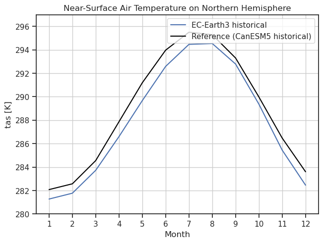 Fig. 113 Annual cycle of tas including a reference dataset.#
