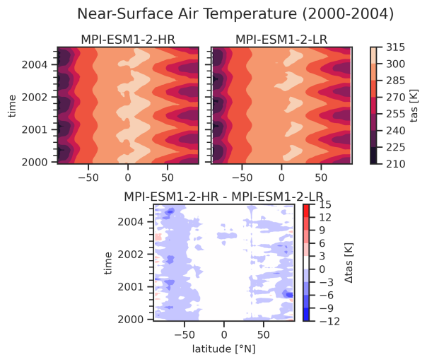 Fig. 121 Hovmoeller plot (time vs. latitude) of tas including a reference dataset#