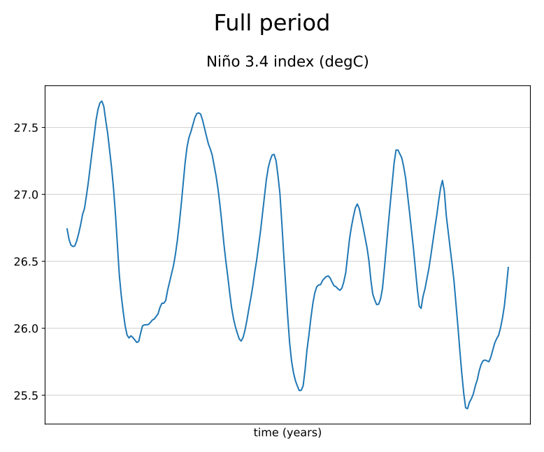 Fig. 110 Timeseries of Niño 3.4 index, computed directly with the preprocessor.#