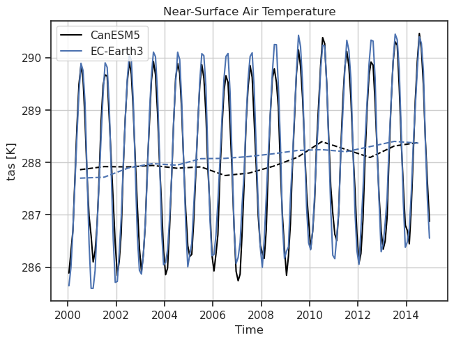 Fig. 112 Timeseries of tas including a reference dataset.#
