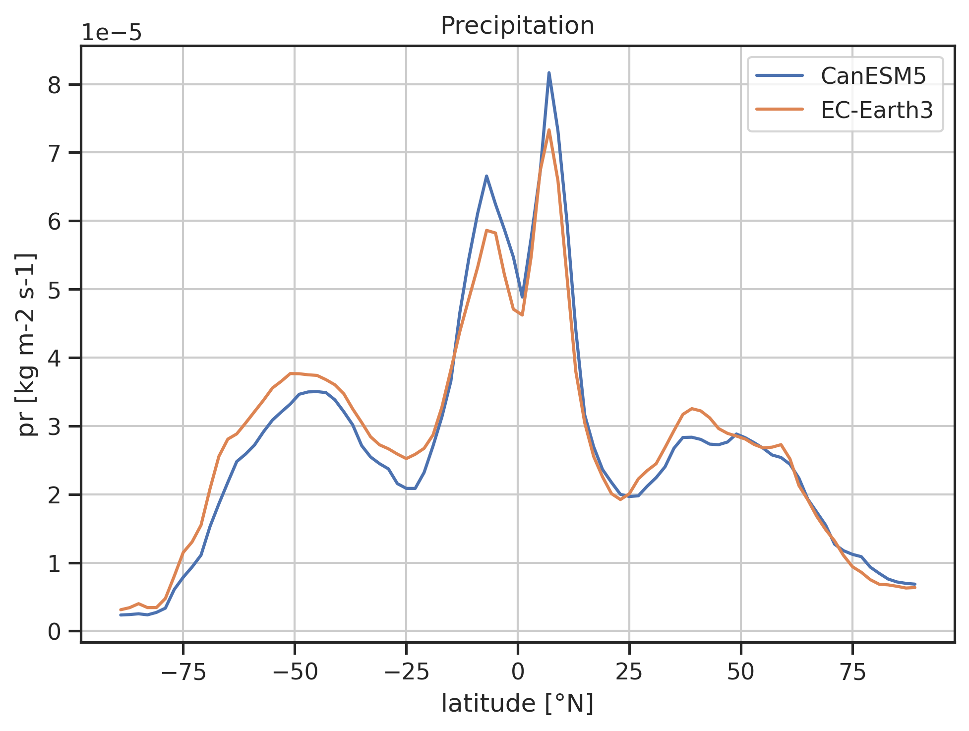 Fig. 119 Zonal mean pr including a reference dataset.#